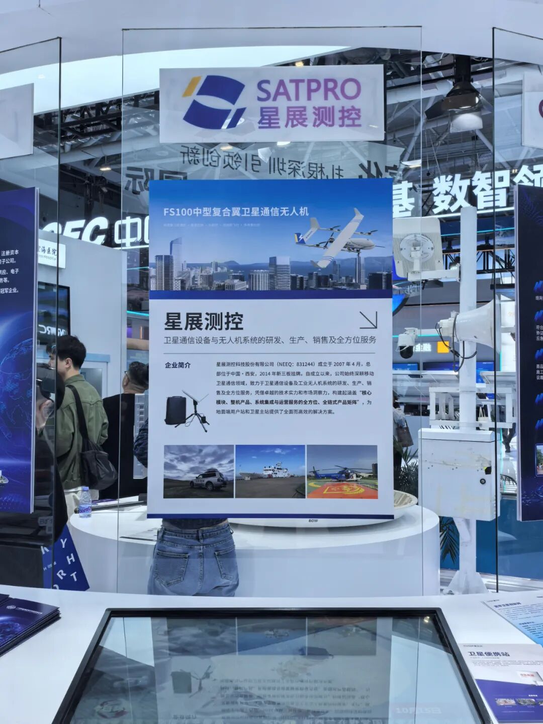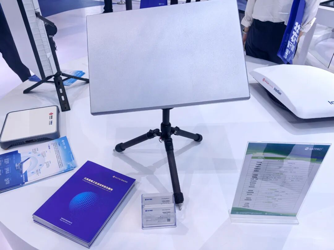 现场,星展测控现场展示自主研发的平板便携站与机载卫星天线。