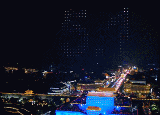 5月1日夜,西安城墙南门人山人海,等待一项破世界纪录的无人机表演。尴尬的是,1374架无人机拼出的图案和文字,一半是乱码,引起许多网友的兴趣。