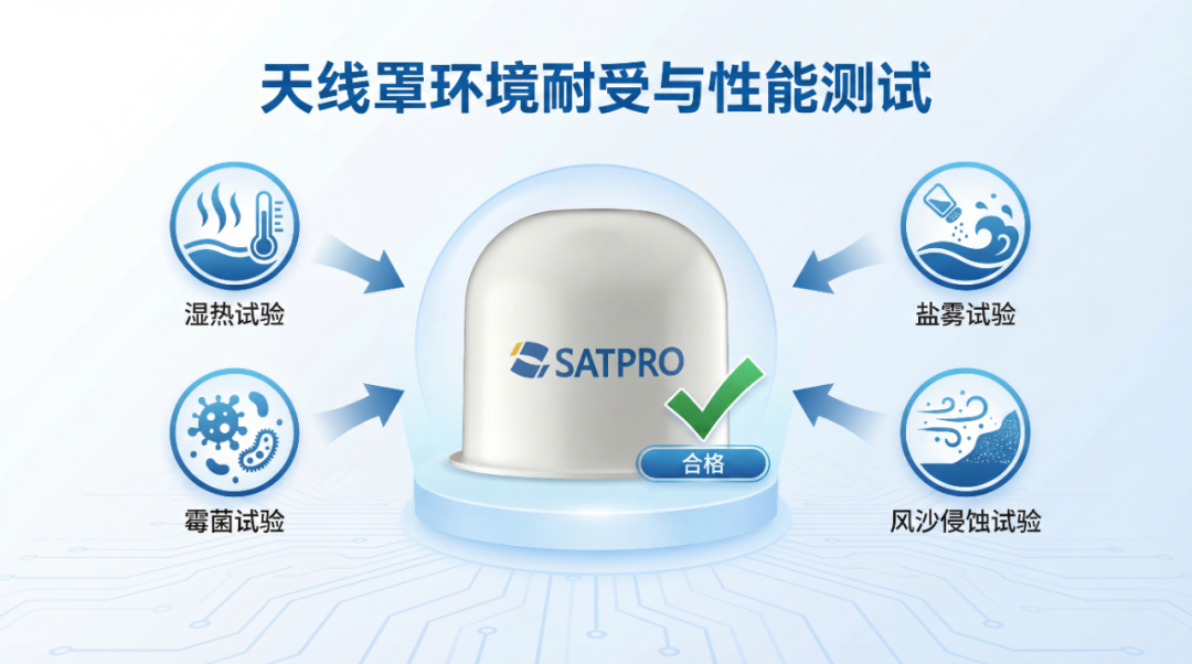 依据国标模拟沙漠、戈壁、热带雨林、海洋等严苛环境。机载天线罩通过湿热、霉菌、盐雾吹袭与磨蚀测试,确保设备在各种情况下依然能保持卓越的机械性能与通信稳定性,经试验各项指标均显示合格。